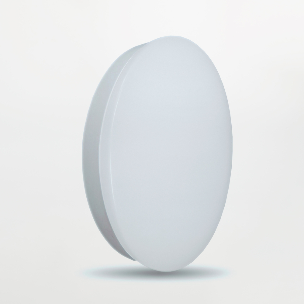 Plafoniere tonde con integrata una piastra con LED ad alta resa luminosa per una diffusione uniforme della luce su tutta la superficie.